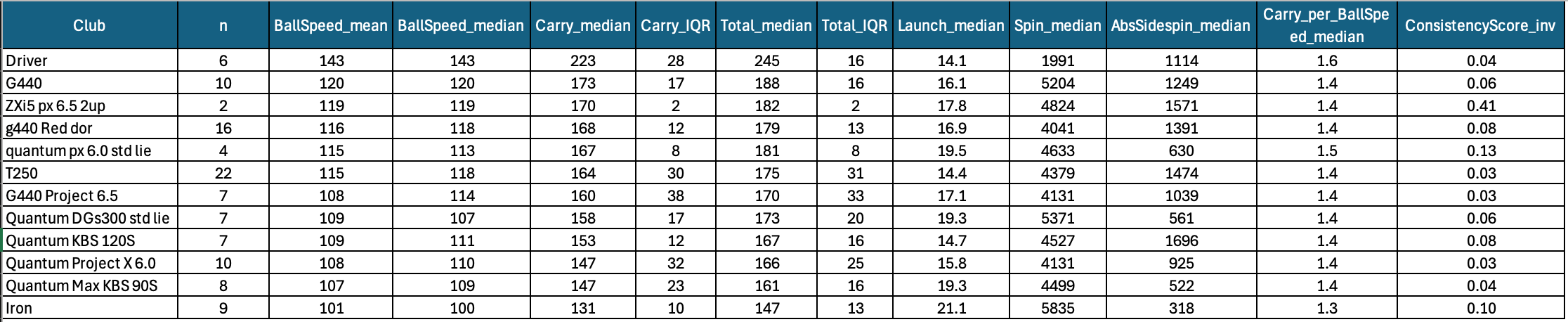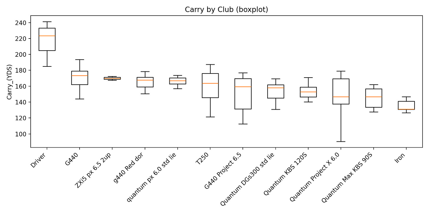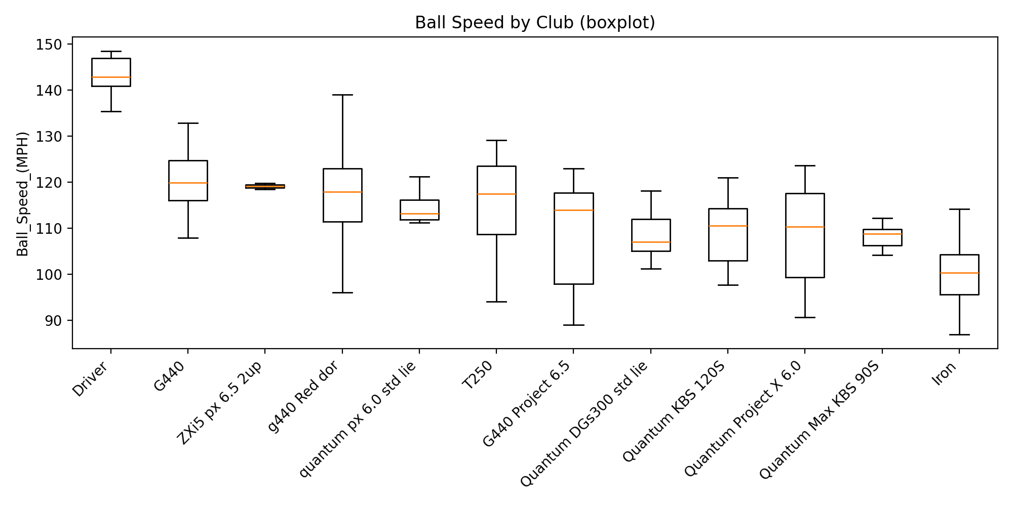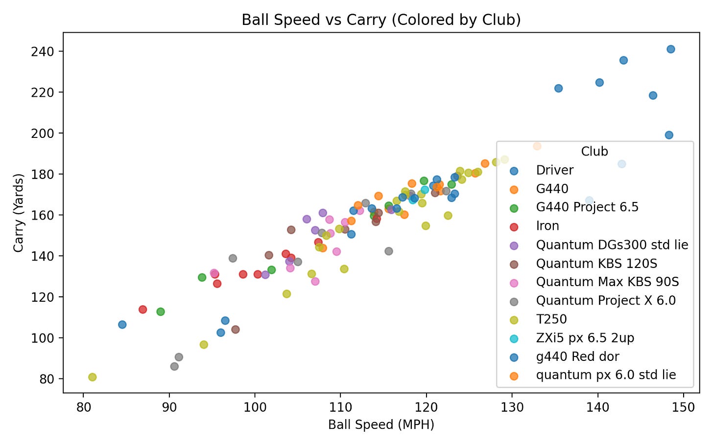I’m in the market for a new set of golf clubs, specifically golf irons.This data is from about an hour and a half of hitting in a simulator.